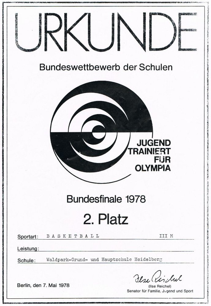 2. Sieger beim Bundesfinale JtfO - 1978 in Berlin